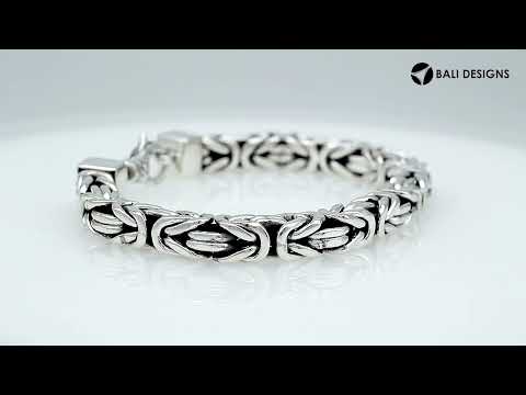 AB-6320-S-8MM Bali Hand Crafted Square Shape Byzantine Style Sterling Silver Bracelet With Lobster