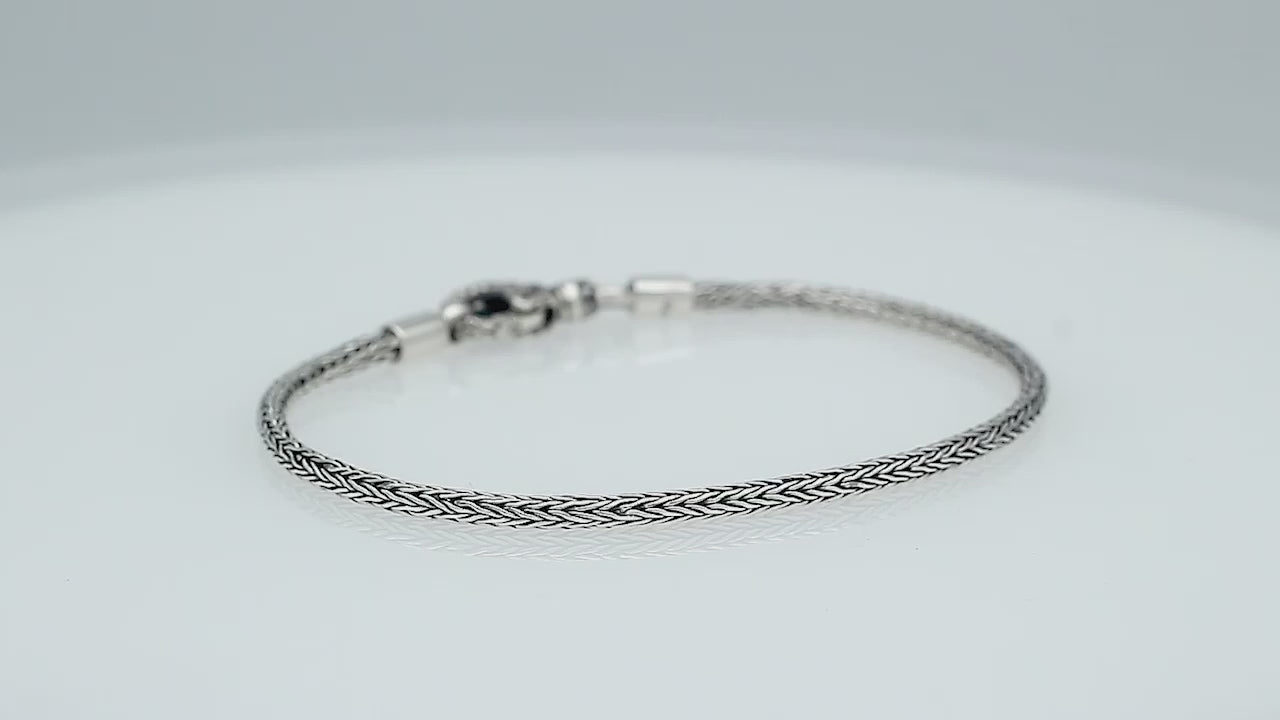 This 2.5MM Sterling Silver bracelet is handcrafted with the classic Balinese Tulang Naga Chain design, admired for its strength, flexibility, and timeless style. Lightweight yet durable, it features an ornate clasp with intricate Bali-inspired detailing, offering both security and artisan elegance. Perfect for wholesale buyers seeking versatile unisex bracelets that can be worn alone or paired with charms and pendants.