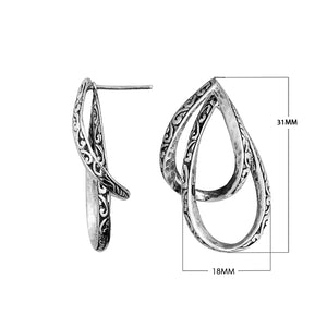 These earrings feature sculpted open loops with intricate engravings, offering a structured and reliable design ideal for wholesale catalogue presentation. The layered curves and consistent silverwork provide dependable visual appeal, supporting bulk inventory needs with classic styling and uniform production quality.