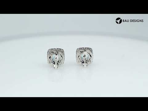 AE-8004-BT Sterling Silver Cushion Cut Blue Topaz Quartz Earrings With Ornamental Detailing And Omega Clip Lock For Jewelry Distributors