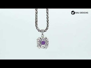 AP-8102-AM Sterling Silver Cushion Amethyst Quartz Pendant With Classic Balinese Carved Frame And Smooth Structured Artistic Prong-Set Design For Catalog Display