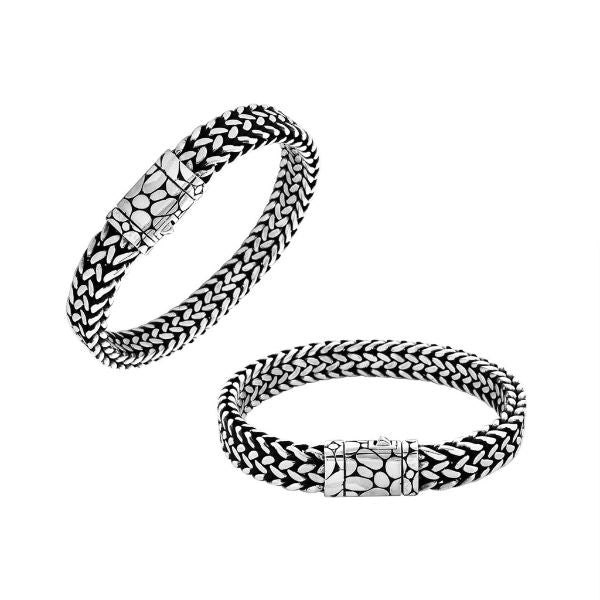 Sterling silver braided bracelet with 3x8 mm chain and push clasp handcrafted in Bali.