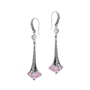 AE-1175-PQ Sterling Silver Pink Quartz Drop Earrings With Engraved Classic Styling For Catalogs