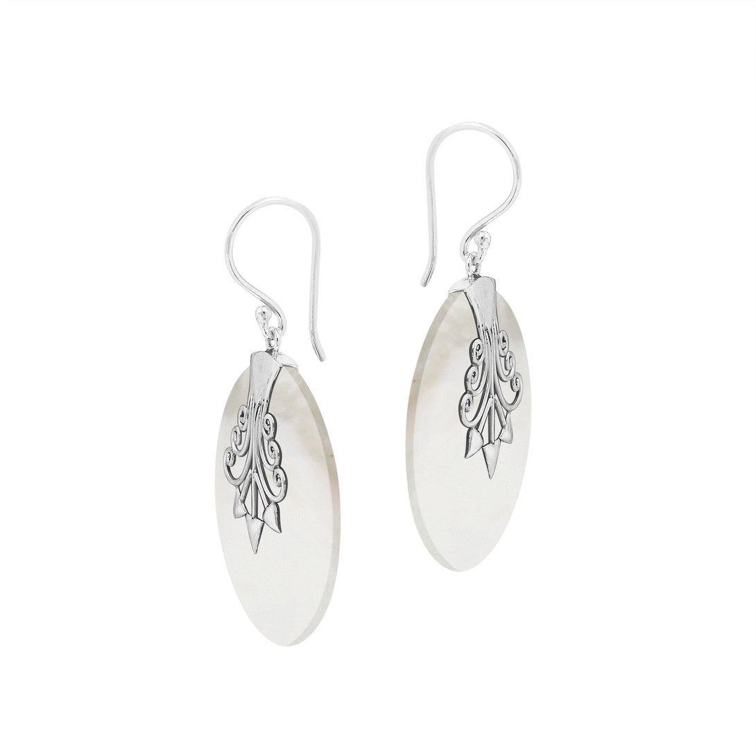 AE-1192-MOP Sterling Silver Round Mother Of Pearl Dangle Earrings