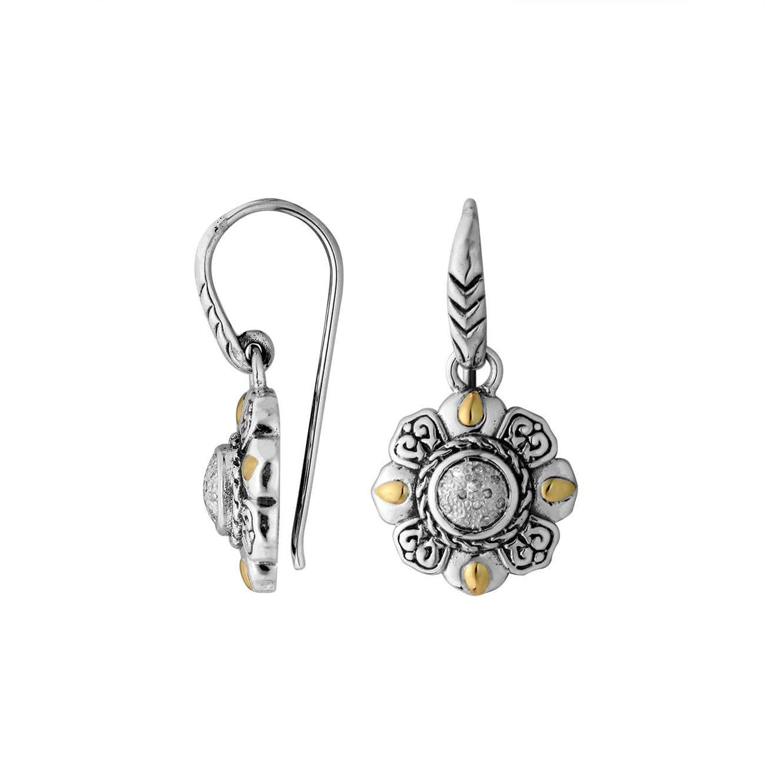 AEG-8050-DY Sterling Silver With 18K Gold Earring With Diamond Floral Mandala Round Drop Earrings