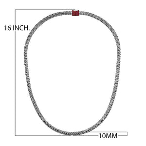 A bold Tulang Naga necklace handcrafted in Bali from 925 Sterling Silver, featuring a clasp set with deep red Garnet Quartz. The combination of strength, artisanal detail, and vibrant color makes this a standout wholesale jewelry piece.