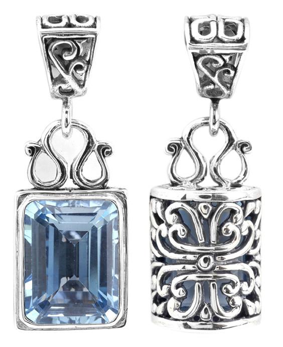 AP-1041-BT Sterling Silver Rectangular Blue Topaz Quartz Pendant – Wholesale Bali Jewelry