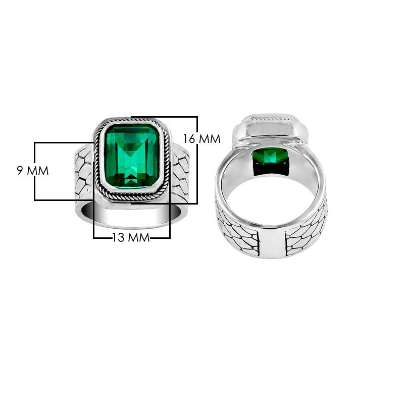 AR-1044-GQ Sterling Silver Men's Ring with Emerald-Cut Green Q.