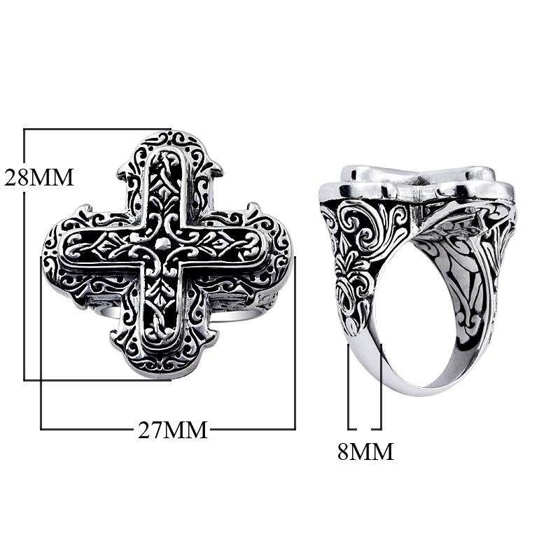 AR-6008-S Wholesale Sterling Silver Rectangular Bali Carving Wide Band Ring