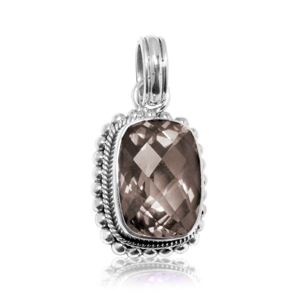 AR-6062-ST Sterling Silver Smoky Quartz Statement Ring – Balinese Beaded Design