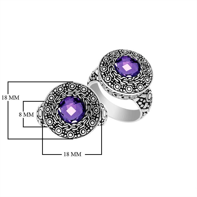 AR-6147-AM Amethyst Quartz Sterling Silver Ring – Wholesale Balinese Engraved Design
