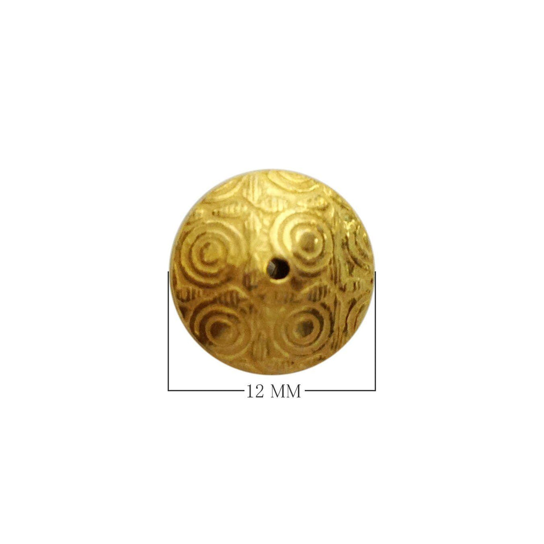 This finely crafted round bead is designed for wholesale buyers, jewelry manufacturers, and designers looking for premium components with authentic Indian artistry. Made using 18K Gold Overlay Over Copper, the bead features a spherical shape adorned with engraved circular motifs that create a rich, textured surface.