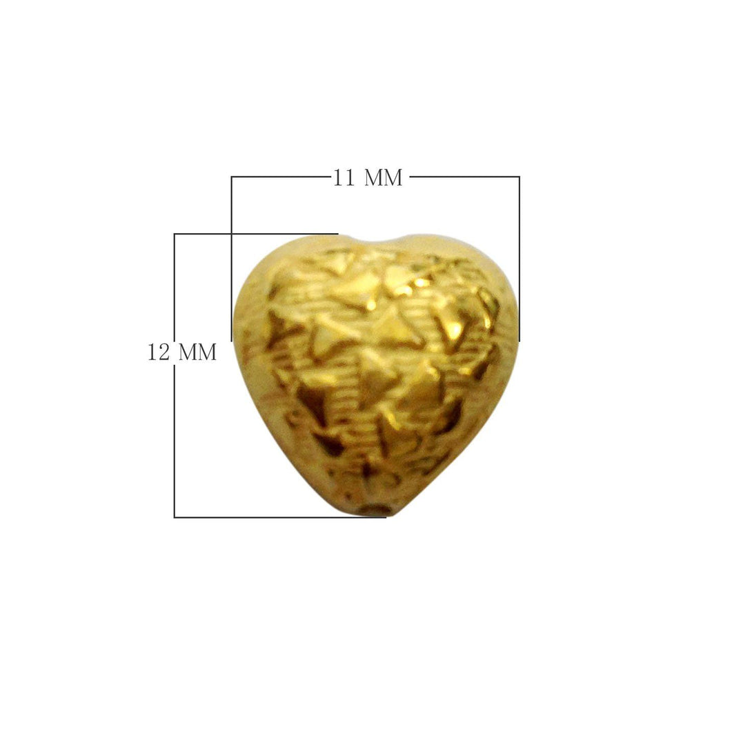 BG-327 Handcrafted 18K Gold Overlay and India Engraved Heart Bead for Jewelry Manufacturing