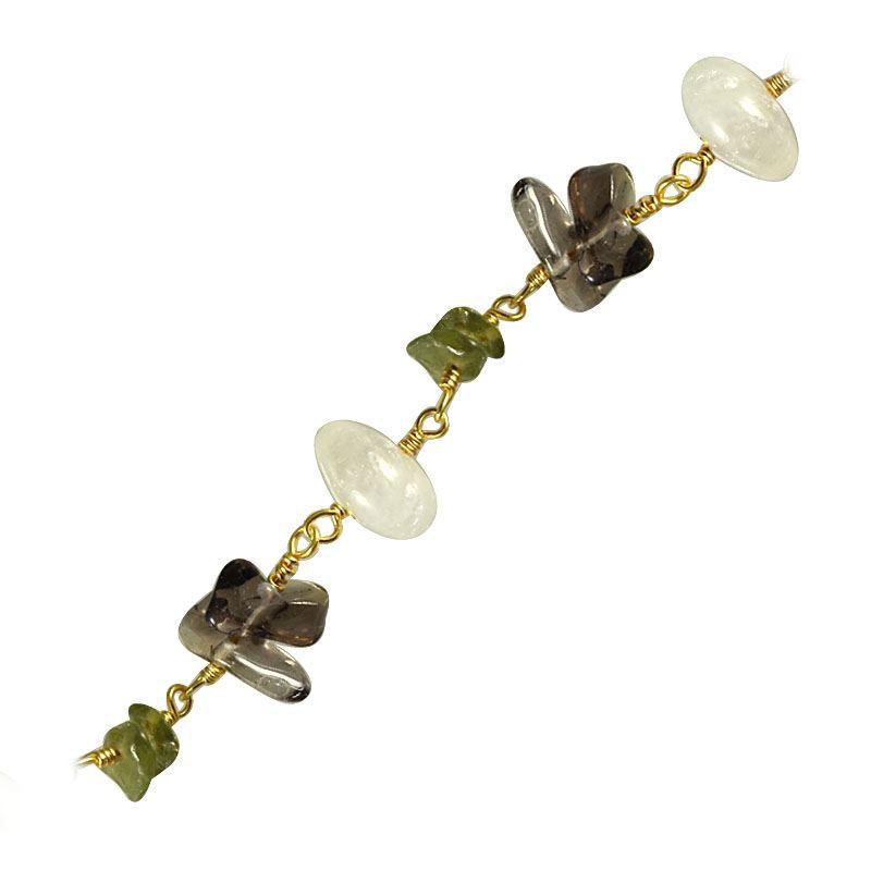 CHG-190-CO1 18K Gold Overlay Beading & Extender Rainbow Moonstone, Peridot, Smoky Quartz Chain