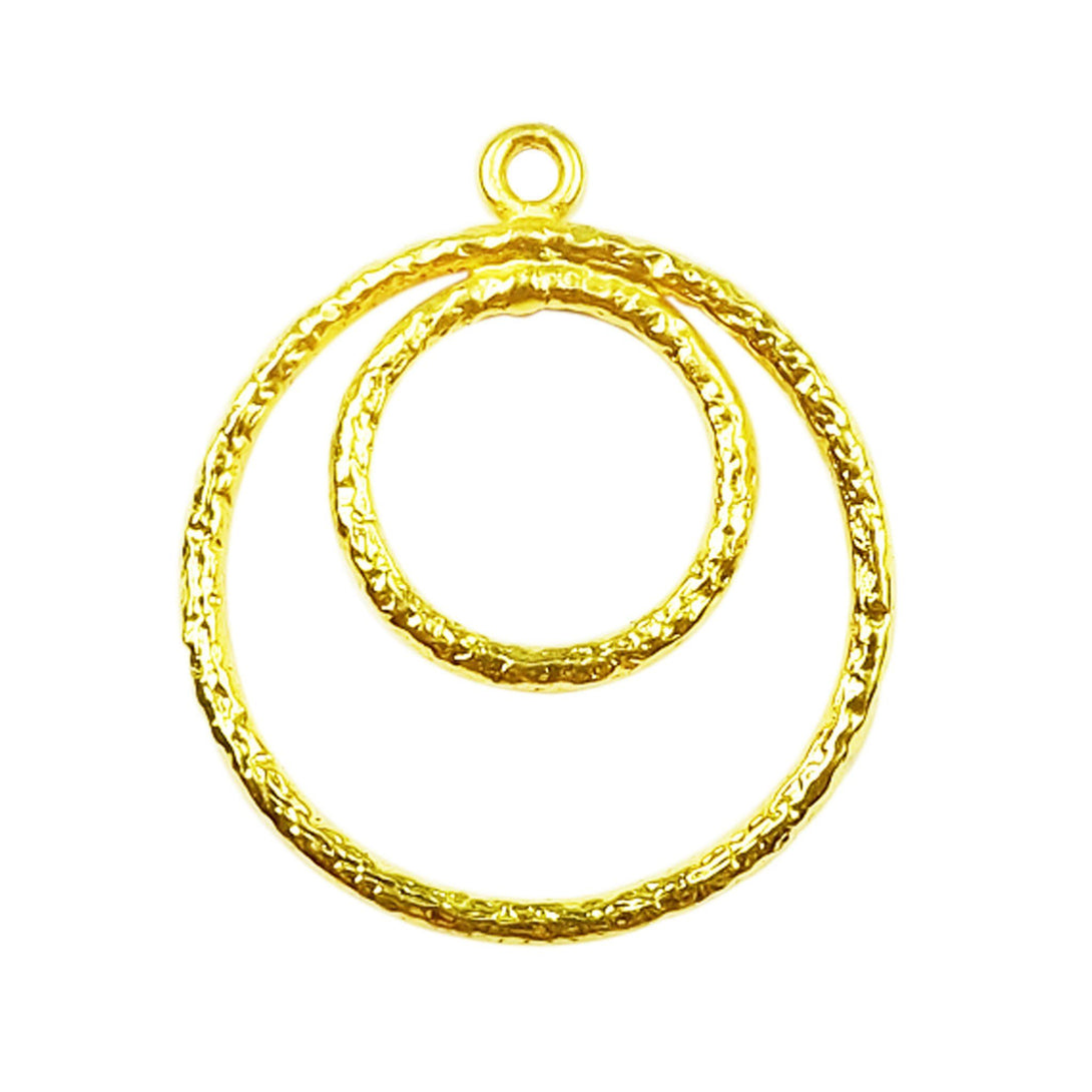 This 18K Gold Overlay Double Circle Earwire Component is a premium finding created for professional jewelry production. Its twin ring structure adds dimensional balance and lightweight strength, making it ideal for modern dangling earrings or pendant assemblies. The texture along the surface enhances the gold tone’s depth and richness, offering a striking handcrafted detail for creative designers.