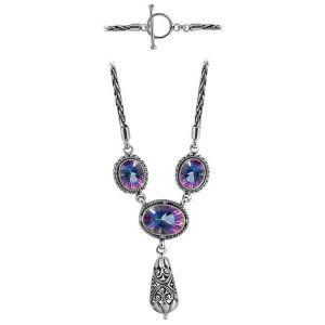 Made in 925 Sterling Silver, this Bali-crafted pendant necklace showcases smooth Mabe Pearl cabochons set in detailed silver frames. Its polished decorative finish highlights the soft pearlescent glow, while the sturdy chain and toggle clasp make it ideal for consistent wholesale inventory.