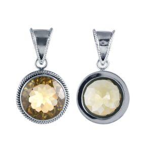 SP-8209-LQ Sterling Silver Lemon Quartz Faceted Round Pendant With Rope-Textured Bali Border – Wholesale Collection