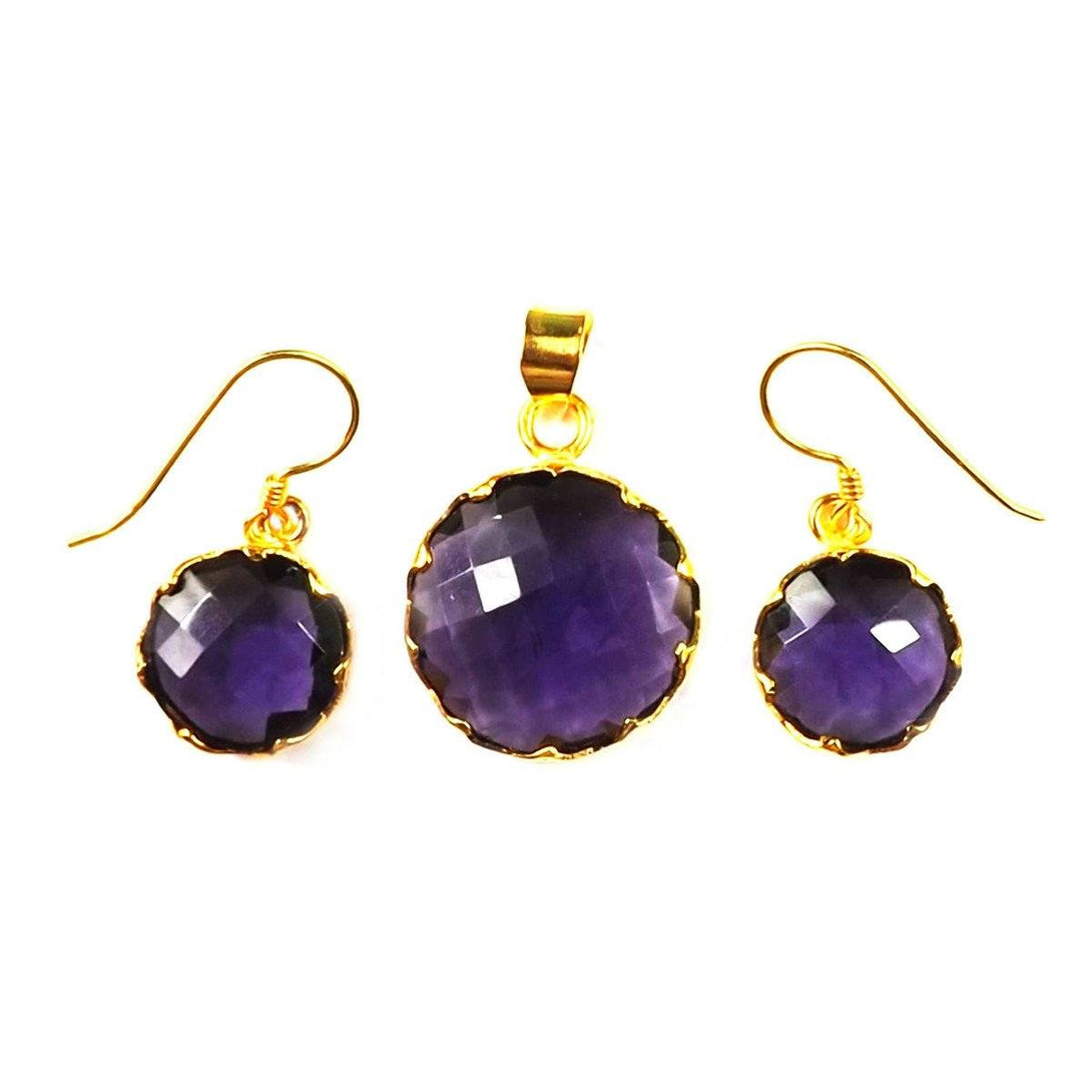 STG-103-AM 18K Gold Overlay Over Copper Round Amethyst Quartz Pendant & Earring Set – Wholesale Collection